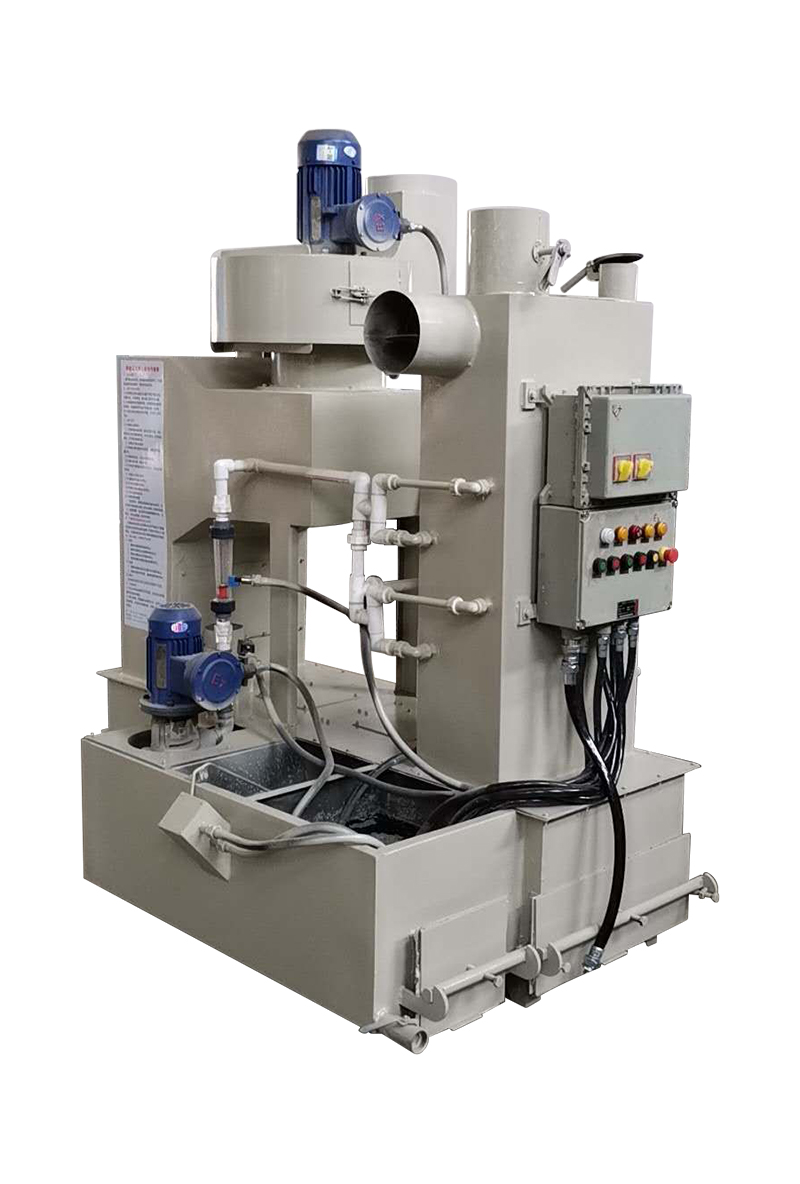 除尘系统由于不存在其他较复杂结构或设备,因此使用寿命长;除尘系统除尘效果好,污染空气经过除尘水箱中的 多个水箱腔式的层层过滤,然沿再经排风管中排风挡板结构 特殊设计,再次过滤,使得最终排出的空气的过滤率高达 99.9%以上;除尘系统特别在过滤铝粉等易爆、易燃粉尘中 有非常好的表现,由于其过滤洁净度高,故完全避免了爆炸、 燃烧的风险,使得其具有免除安全生产隐患,保障员工生命。 |